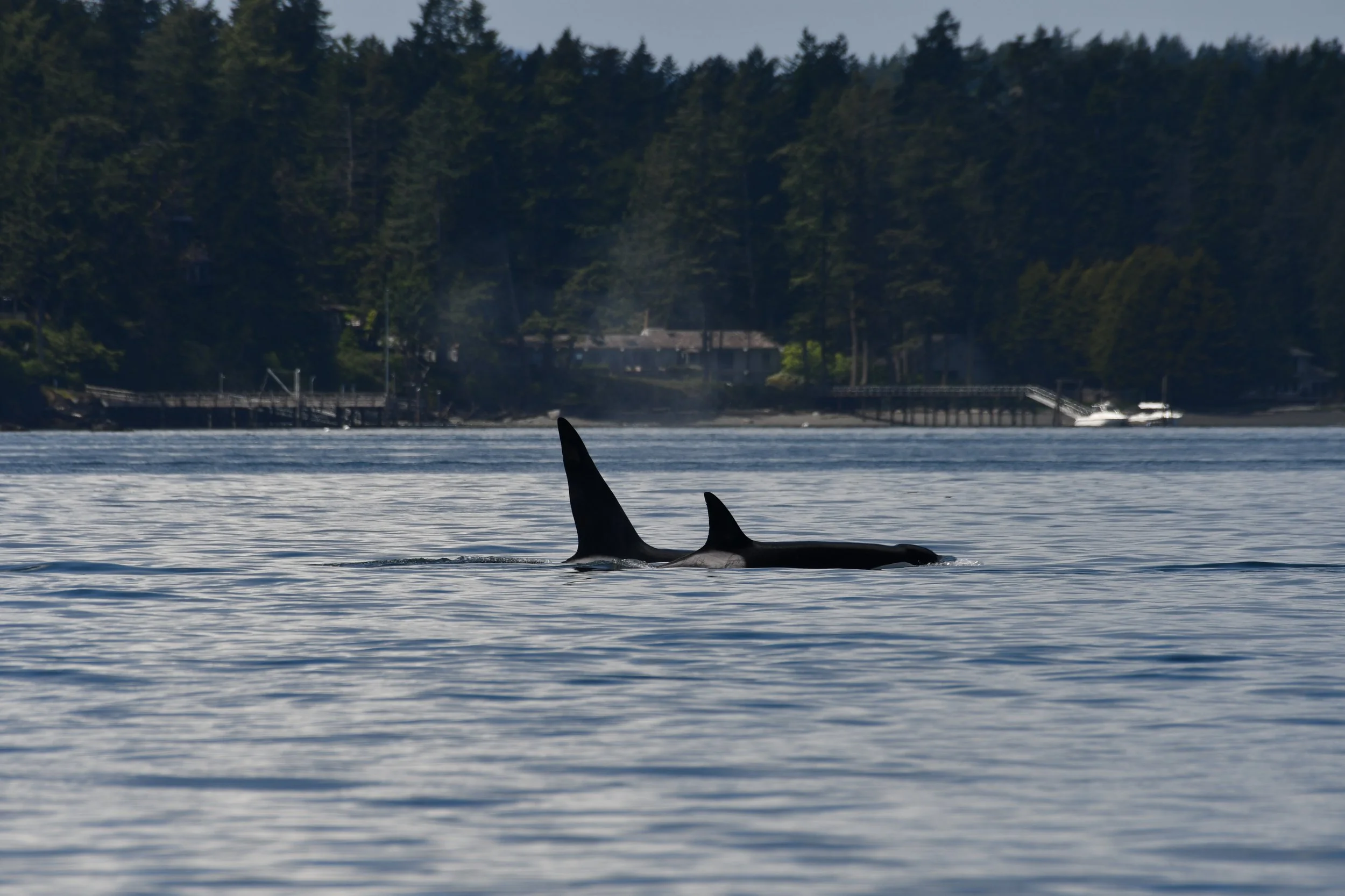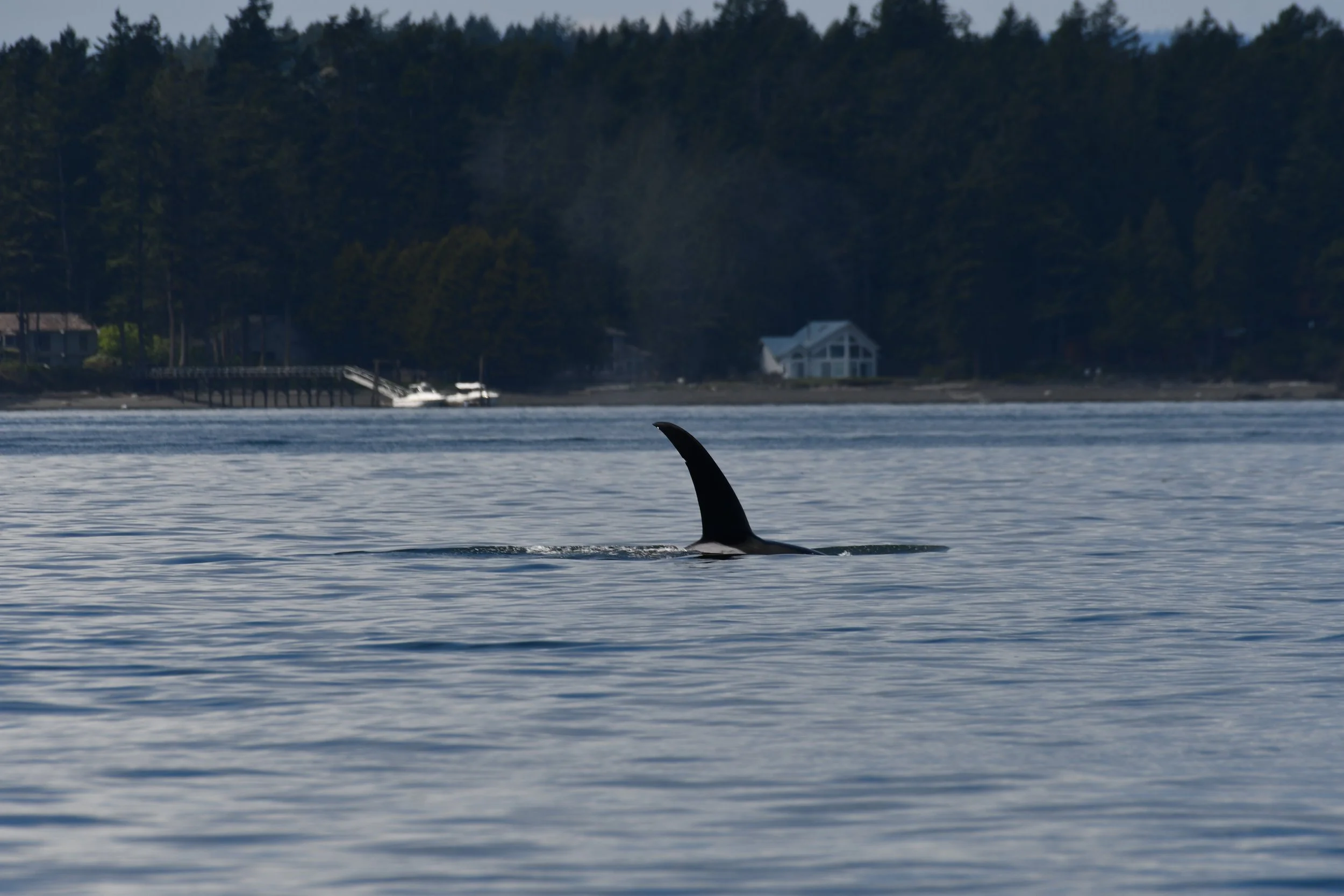 We then headed towards Spieden channel, where we were observing a cluster of whale watching vessels on our charts. Upon arriving, we encountered T019s, brothers Spouter and Galiano, and mom Nootka. These whales headed Northwest, around the top of Spieden Island and we left them after obtaining ID photos to reduce our own vessel disturbance.