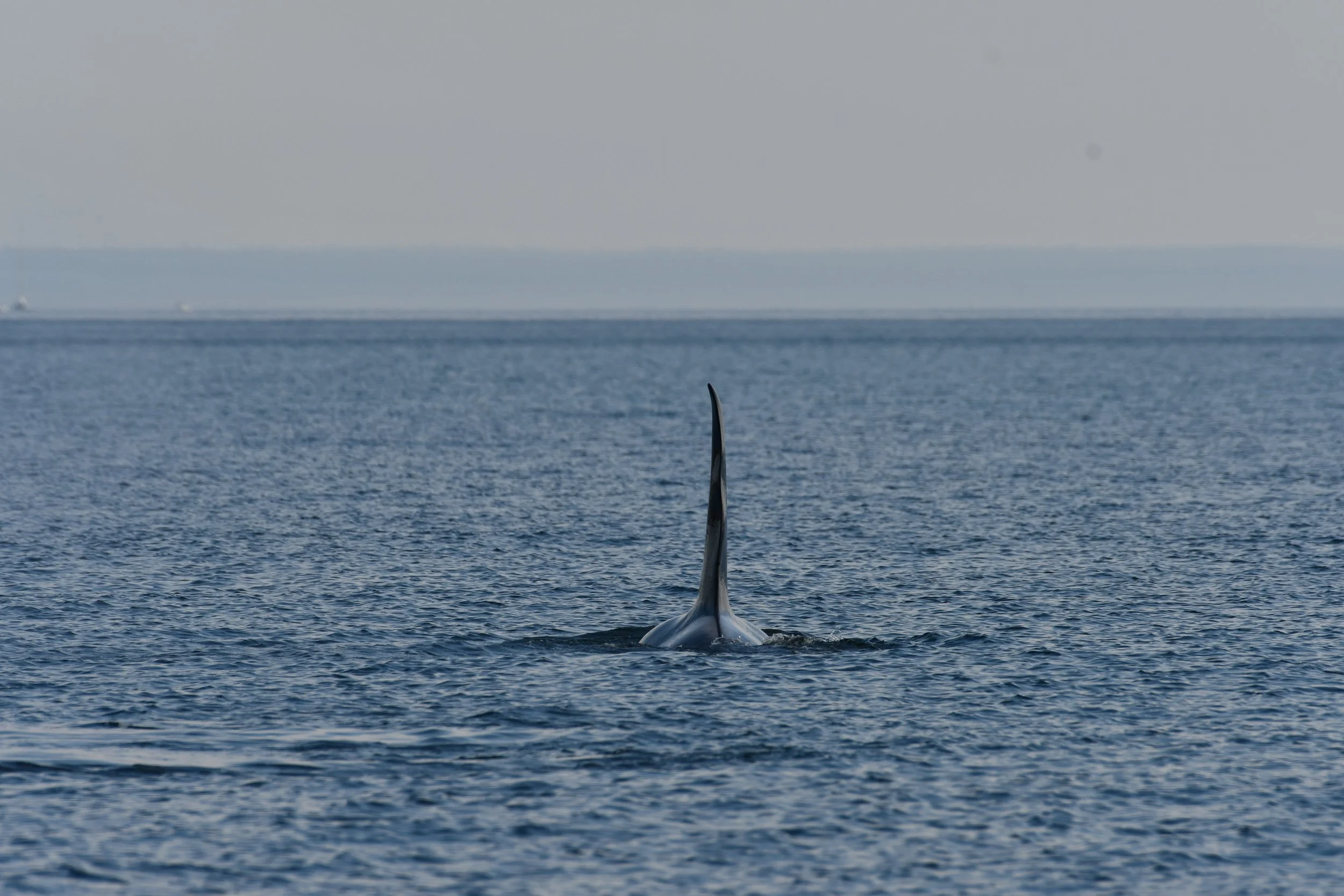 Following our SRKW sighting on September 08, we set out with news J pod was still in the area of San Juan Island. As we travelled down Haro Strait, we saw a group of whales south of ĆTESU (Darcy Island) heading north. We slowed and observed them and quickly determined these were Bigg’s killer whales. We stayed with these whales to obtain identification photos, and to monitor marine mammal compliance, flying our whale flag and hailing other vessels in the area to keep our killer whale relatives safe. These whales are believed to be the T099s.