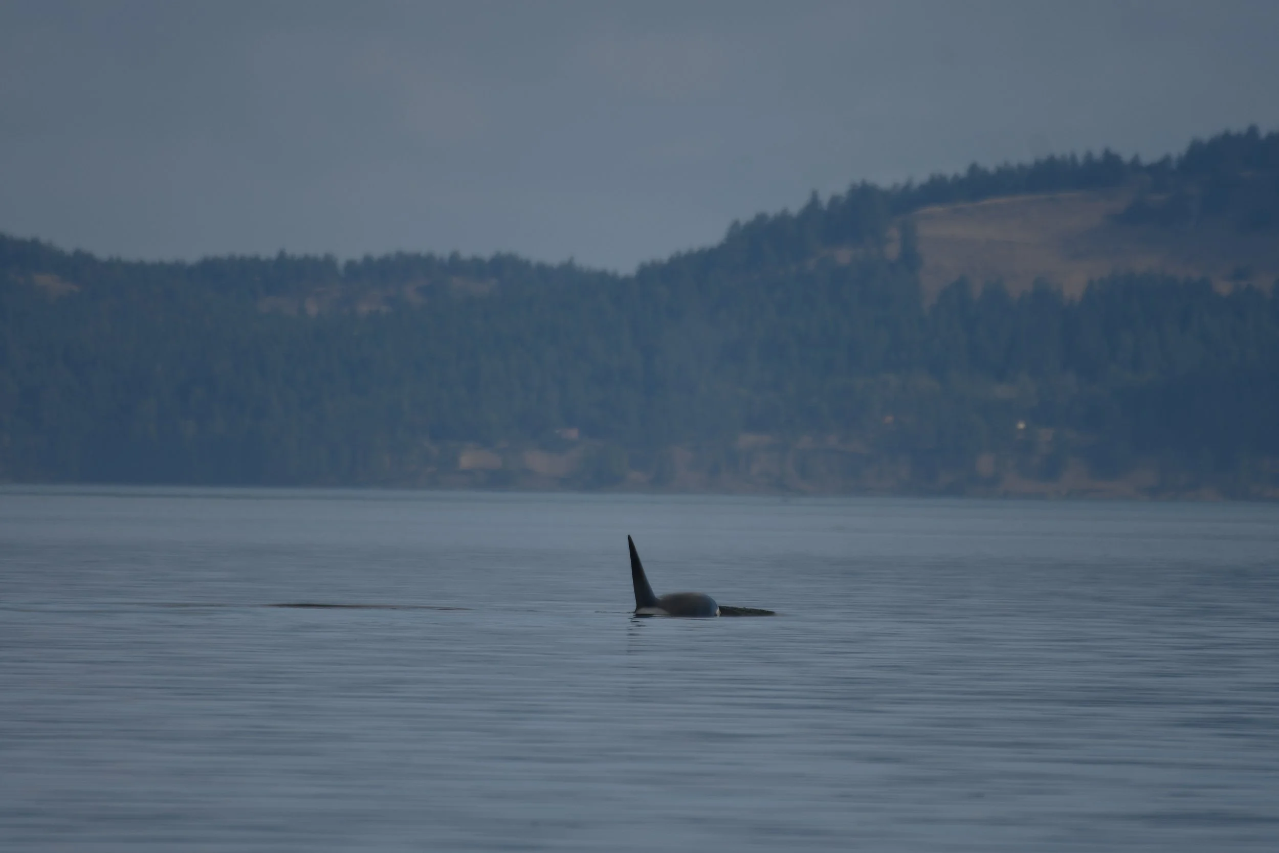 After gathering data with the Bigg’s, we continued south towards the Southern Residents. These whales were determined to be J pod, and they were shuffling up and down the west side of San Juan Island near KEXṈIN,EṈ. The whales were surface active, and were chatty as we deployed our dip hydrophone and obtained underwater recordings. It was a special day to listen to the whales in real time as we photographed them. We stayed with the whales with our engines off for a couple hours, and then headed back up north to end the day.